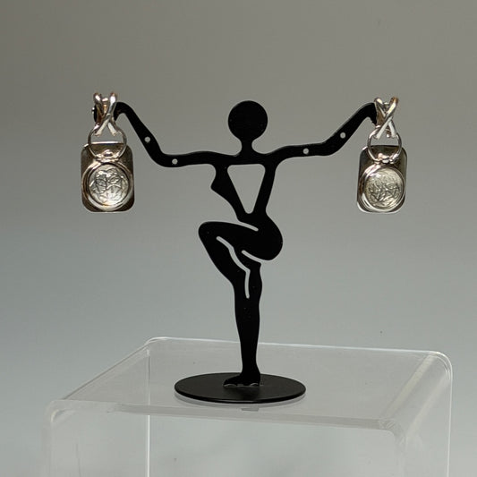 POLYMER CLAY DANGLE EARRINGS WITH CHEQUE BEAD DANGLE AND CRYSTAL BEAD ACCENT ON STAINLESS STEEL EAR WIRES PCE863