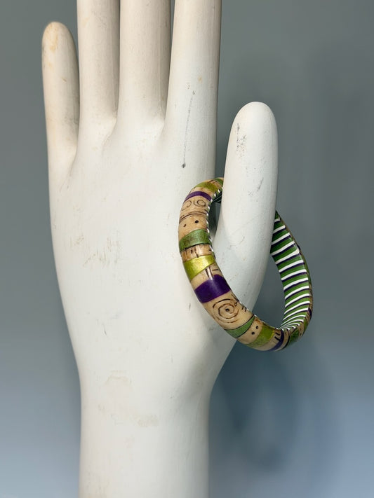 ETCHED POLYMER CLAY BANGLE BRACELET WITH STRIPED INSIDE PCBL873