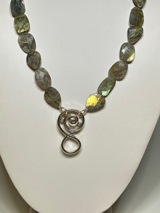 .925 LABRADORITE BEAD CHAIN NECKLACE WITH SWIRL DROP BR266