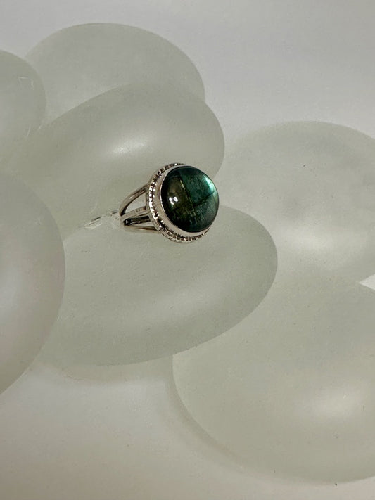 .925 LABRADORITE ROUND STATEMENT RING BR323