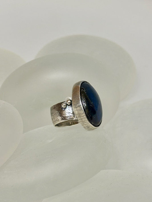 .925 LABRADORITE OVAL WIDE BAND STATEMENT RING BR325