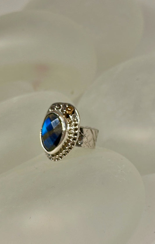 .925 LABRADORITE FACETED OVAL "ABUNDANCE" RING BR327