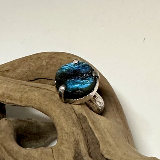 .925 NATURAL SURFACE LABRADORITE PRONG SET RING BR235