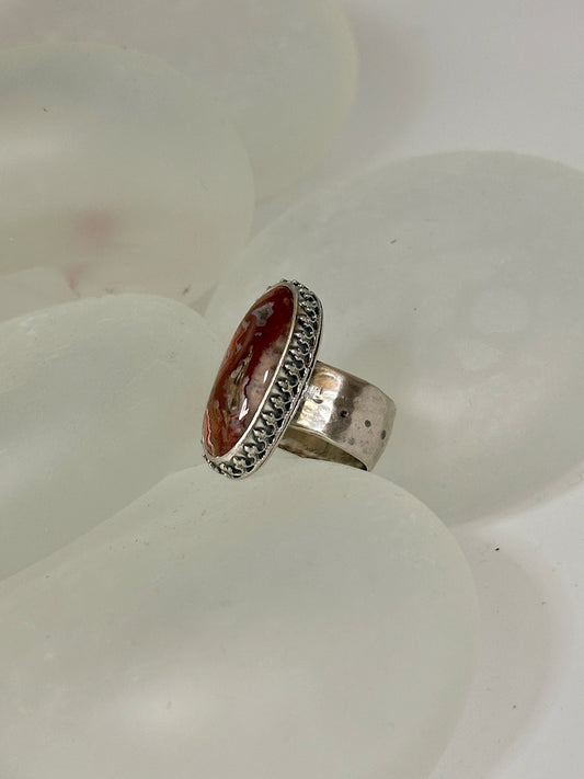 Sold out.925 MEXICAN LACE AGATE RING BR328