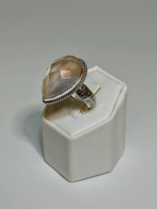 .925 QUARTZ/MOTHER OF PEARL DOUBLET RING