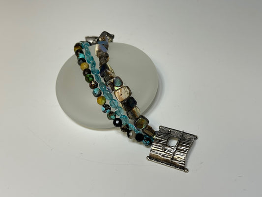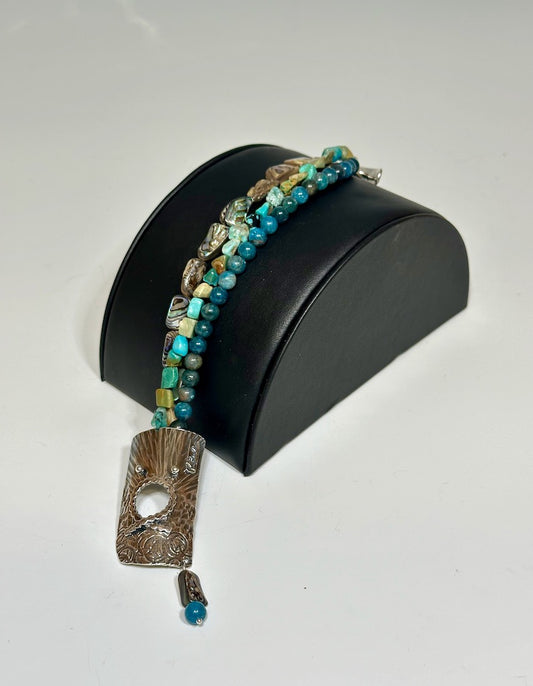 .925 WILDWOOD TRIPLE STRAND BRACELET WITH TURQUOISE, APATITE AND ABALONE BR271