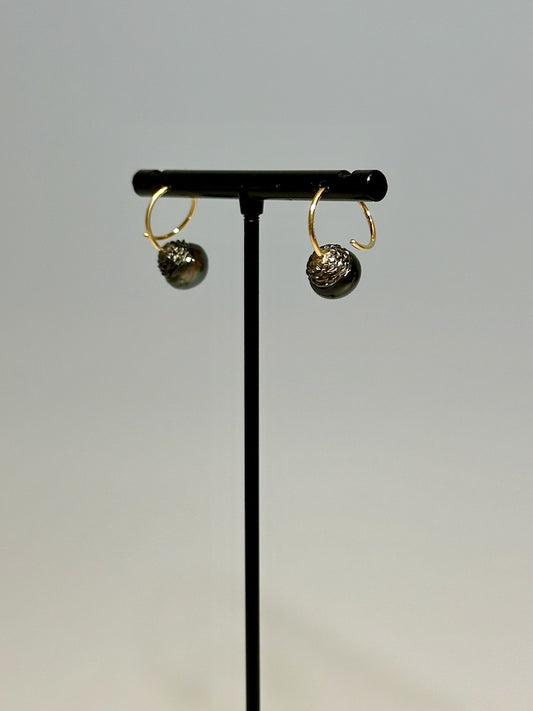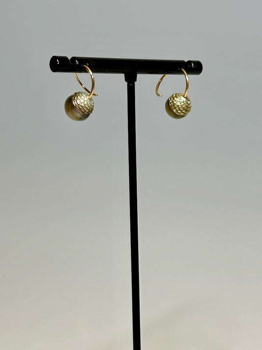 ACORN CARVED TAHITIAN PEARL LOOP EARRINGS WITH 18k YELLOW GOLD AV133