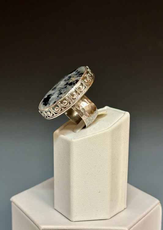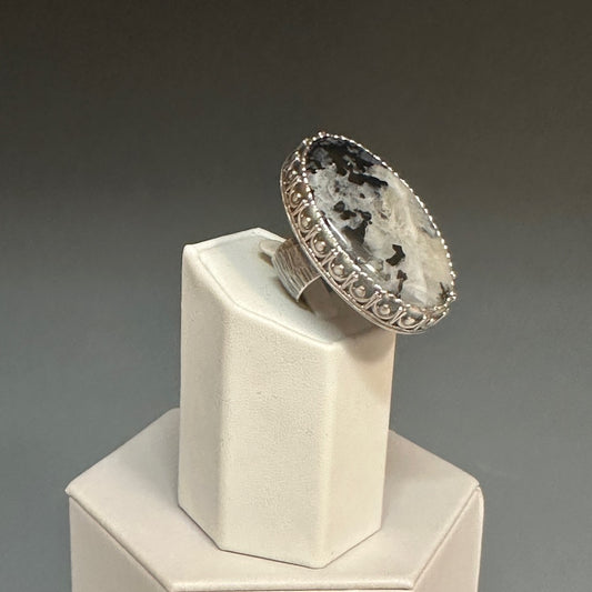 925 "ARISING LIGHT" BLACK TOURMALINE RAINBOW MOONSTONE MIGHTY STATEMENT RING BR185