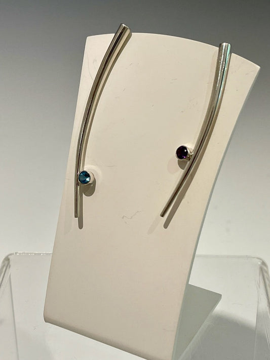 Asymmetrical Sterling Silver Pick Earrings with Topaz and Amethyst MB146