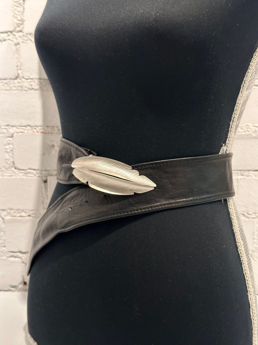 CUSTOM SHELL BELT BUCKLE AND GARMENT DYED LEATHER BELT WITH STERLING SILVER MB5B.1