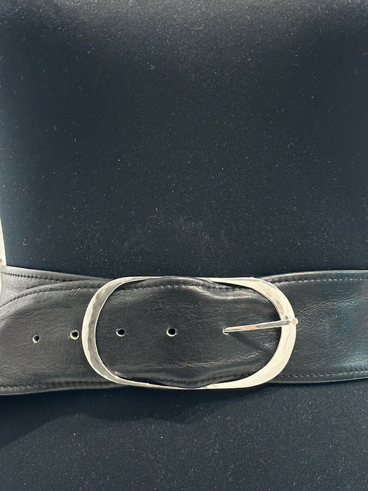 CUSTOM OVAL W/ TONGUE BELT BUCKLE AND GARMENT DYED LEATHER BELT WITH STERLING SILVER MB6B