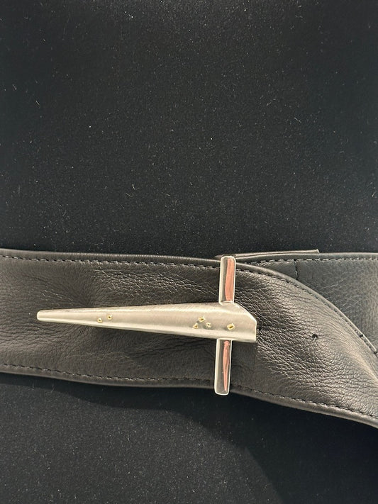 CUSTOM BELT BUCKLE AND GARMENT DYED LEATHER BELT WITH STERLING SILVER AND GOLD MB2B