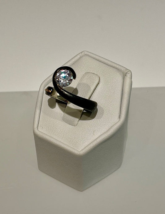 CZ RING WITH OXIDIZED STERLING SILVER BR0980