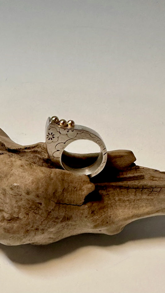 HOLLOW FORM STERLING SILVER RING WITH 14K BALLS MS229