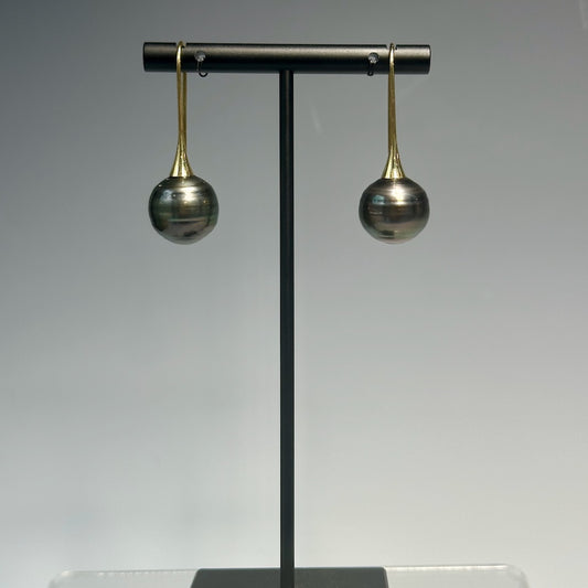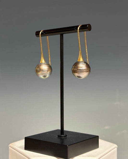Luna 18k Yellow Gold Tahitian Circled Pearl Earrings AV107