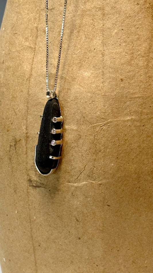 LONG PEBBLE STERLING SILVER PENDANT WITH CZ AND SS CHAIN MS219