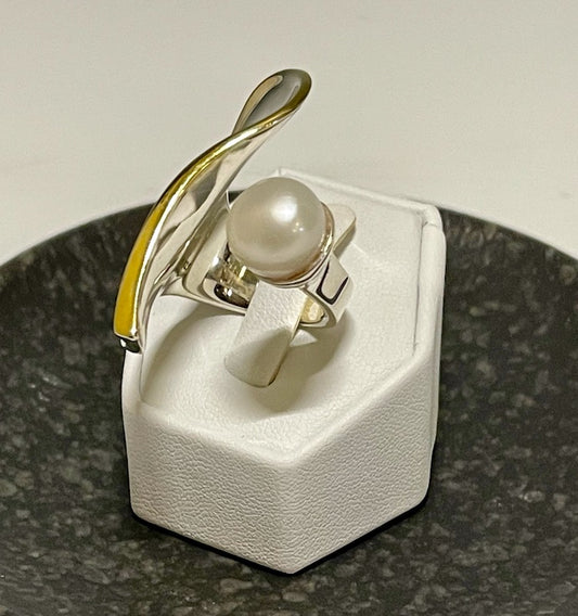 STERLING SILVER AND 14K WRAP RING WITH PEARL BR275215