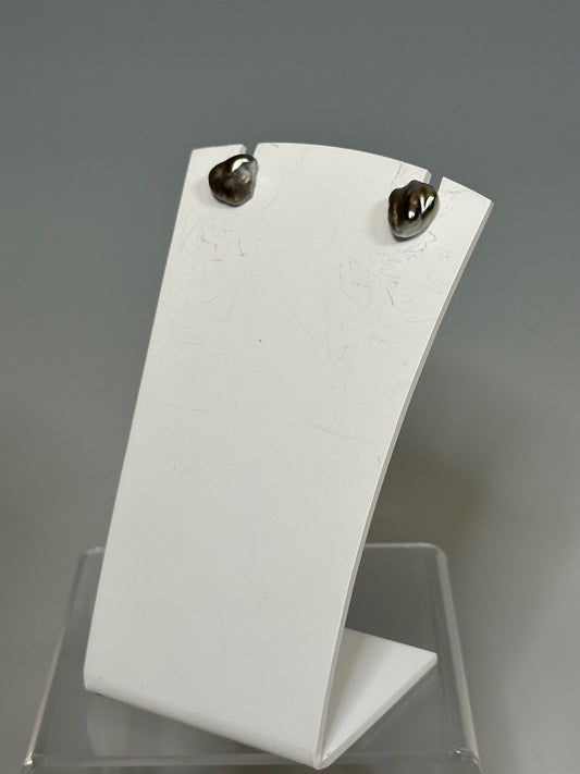TAHITIAN KESHI NUGGET PEARL STUD EARRINGS WITH 18k GOLD POSTS AV117