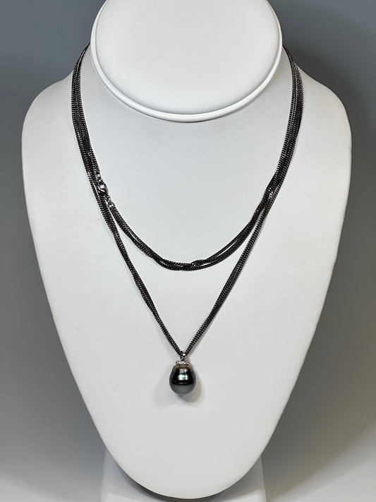 TAHITIAN AND DIAMOND DROP PENDANT WITH 18k GOLD AV122