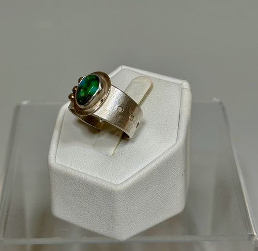 STERLING SILVER TURQUOISE AND 14K BALL RING MS233