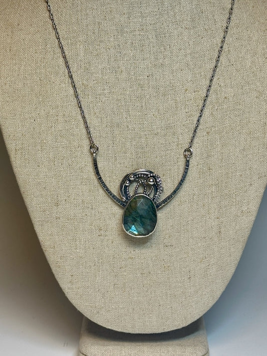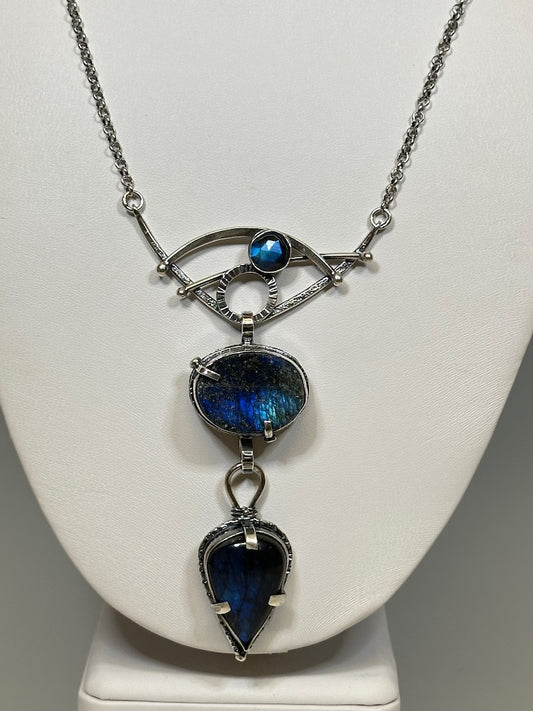 .925 EYE OF THE BLUE LAKE PENDANT WITH LABRADORITE NECKLACE BR309