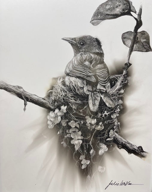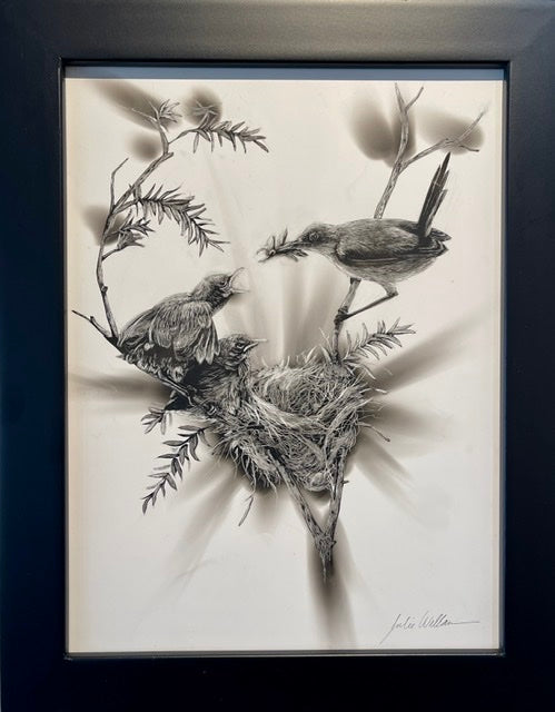 “Carolina Wren Chicks” Fumage Drawing on Clay Board