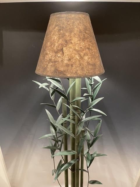 GREEN PINE NEEDLE AND PINE CONE HAND FORGED METAL LAMP