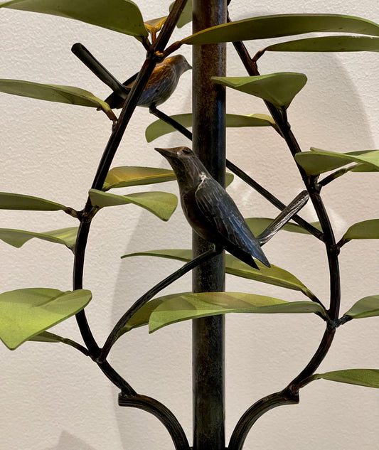 MORNING GLORY AND WREN HAND FORGED LAMP