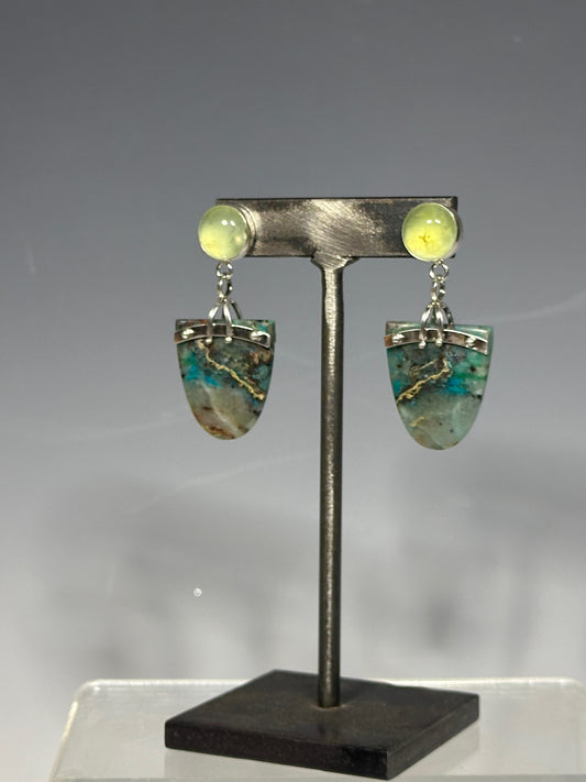 .925 PREHNITE POST EARRINGS W/CHRYSOCOLLA SLICE BR365