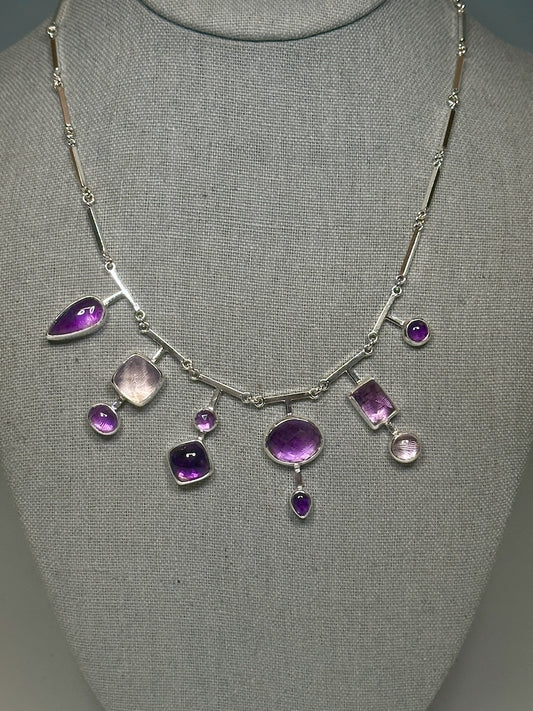 10-STONE AMETHYST STERLING SILVER HAND FORGED NECKLACE NM631N