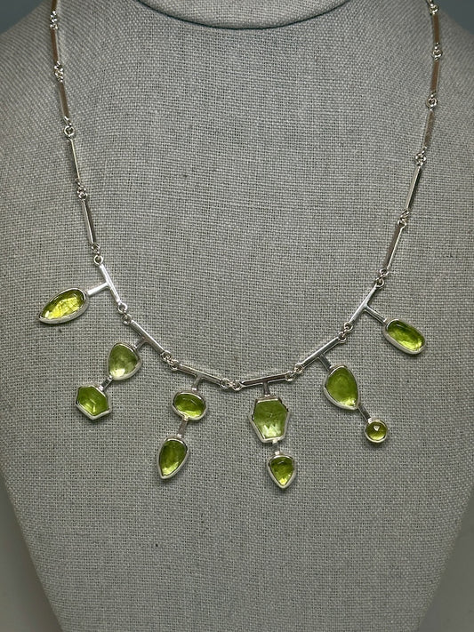 10-STONE PERIDOT STERLING SILVER HAND FORGED NECKLACE NM632N
