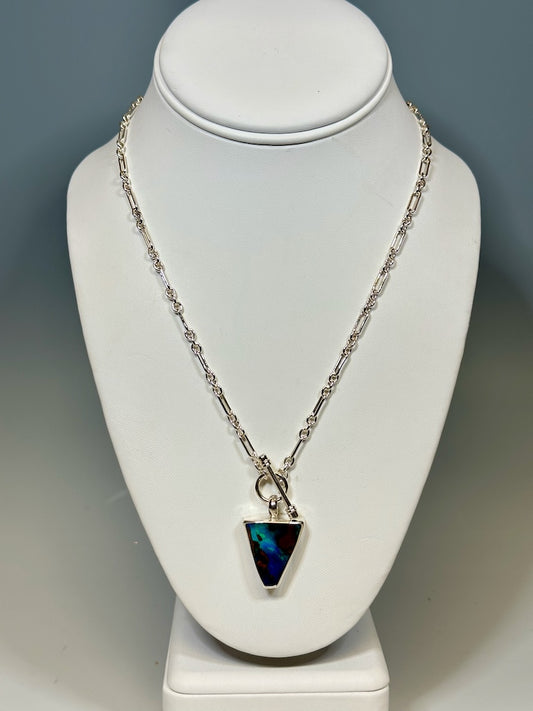 BOULDER OPAL AND BLUE TOPAZ FRONT TOGGLE STERLING SILVER NECKLACE - NM578N