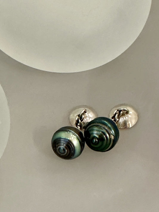 CIRCLED TAHITIAN PEARL CUFFLINKS WITH OXIDIZED STERLING SILVER AV144