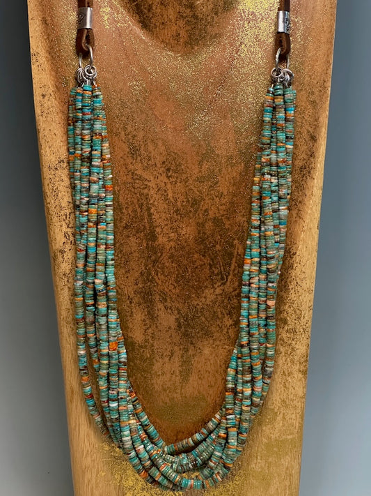CEREMONY NECKLACE WITH MULTI STRAND TURQUOISE AND OYSTER HEISHI BEADS JK188