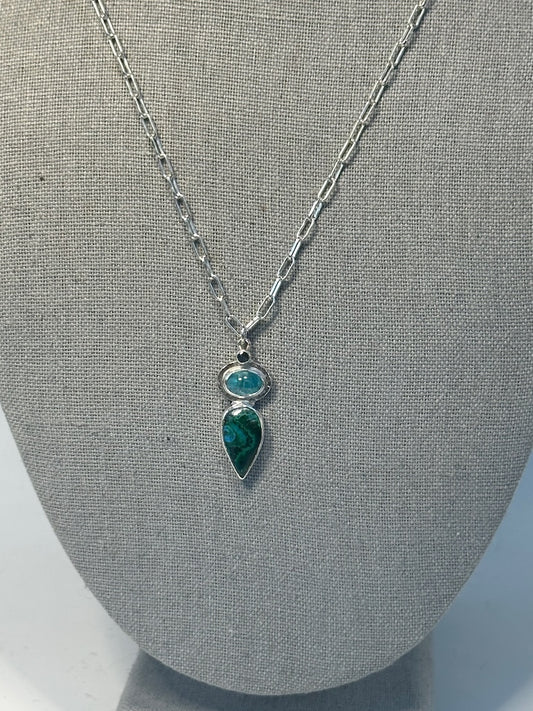 CHRYSOCOLLA, APATIE AND BLUE TOPAZ STERLING SILVER NECKLACE - NM606