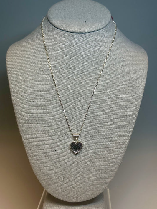 CARVED TOURMALINE HEART NECKLACE WITH STERLING SILVER CHAIN NM621N