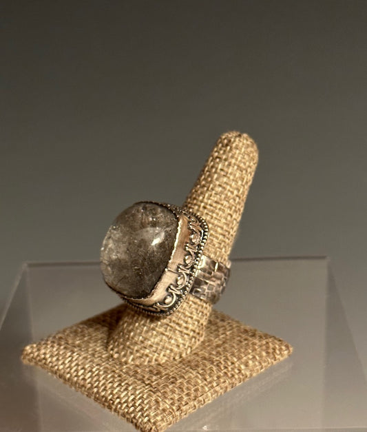 .925 BLACK TOURMALATED QUARTZ STATEMENT RING BR140