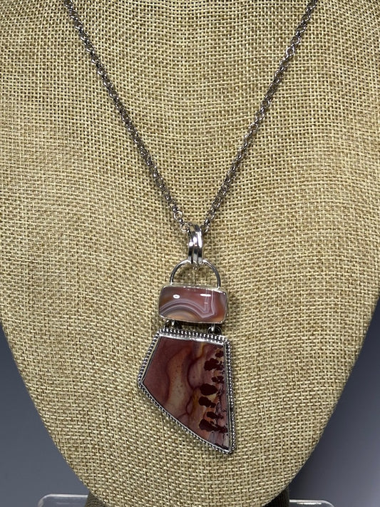 .925 BLUSH BOTSWANA AGATE W/APACHE DENDRITIC JASPER NECKLACE BR368