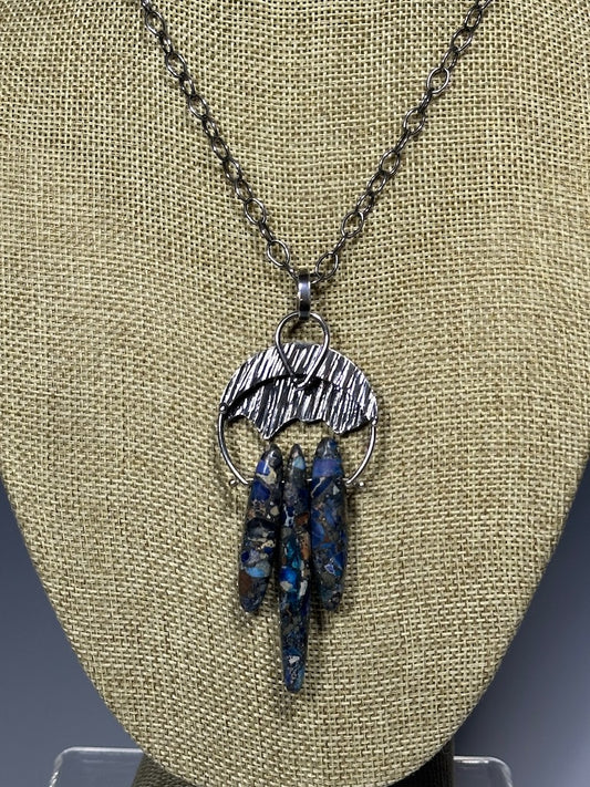.925 BLUE SEA SEDIMENT BEAD SHADOW FALLS PENDANT WITH OXIDIZED LINK CHAIN BR371
