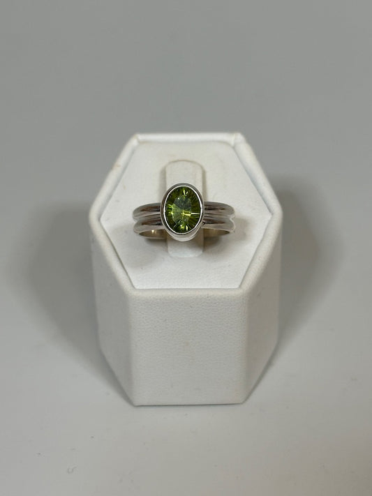 FANCY CUT PERIDOT RING SET IN STERLING SILVER NM569R