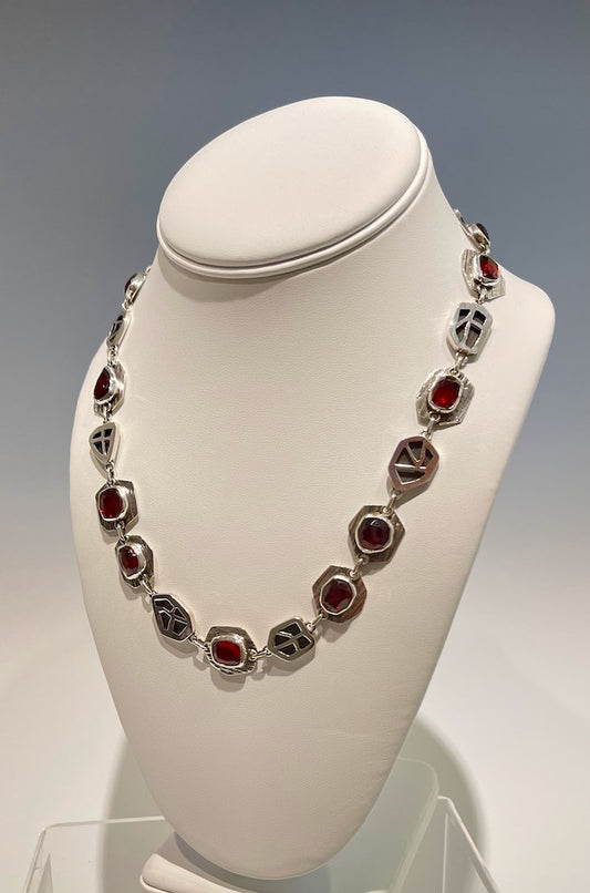 FACETED GARNET AND HOLLOW FORM STERLING SILVER NECKLACE NM372N