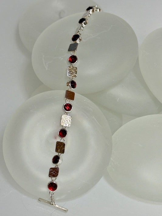 GEMSTONE GARNET AND PATTERNED STERLING SILVER BRACELET NM540B