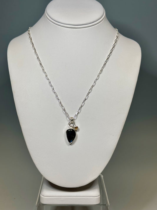 LABRADORITE AND CITRINE STERLING SILVER NECKLACE - NM561N
