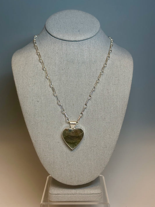 LARGE LABRADORITE HEART NECKLACE WITH STERLING SILVER CHAIN NM619N