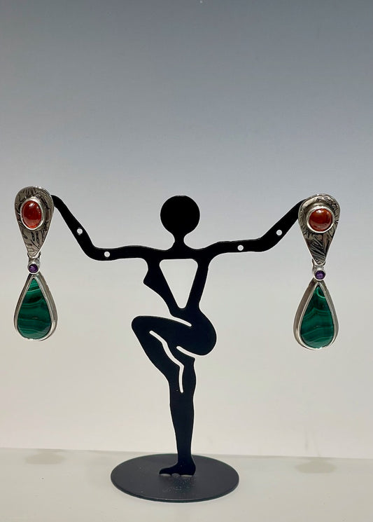 MALACHITE, AMETHYST AND SPESSARTITE GARNET Earrings with Sterling Silver NM389E