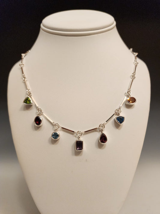 MULTI-STONE AND STERLING SILVER HANDMADE NECKLACE- NM483N