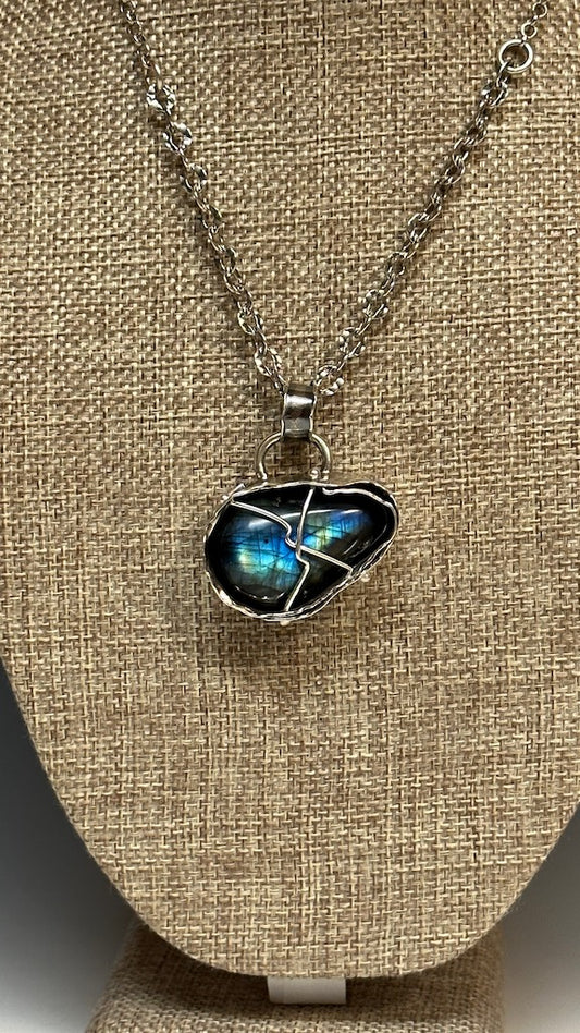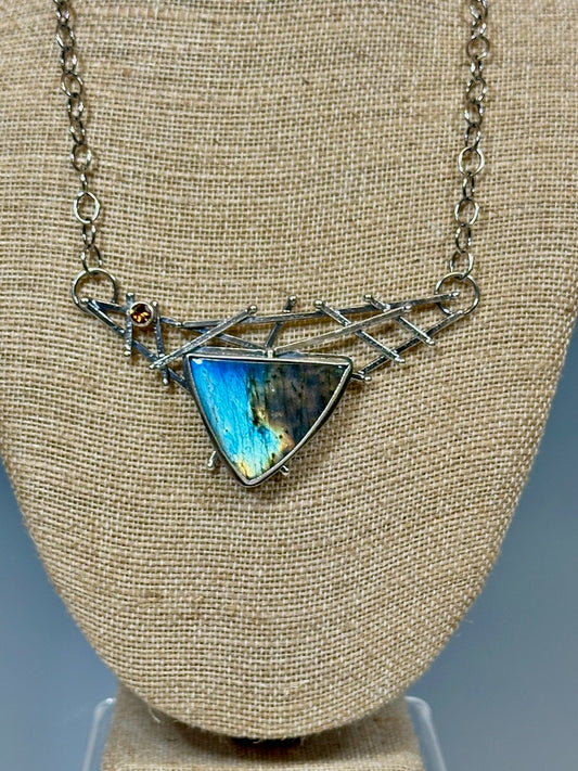 .925 CROSSING PATHS - LABRADORITE AND ORANGE TOURMALINE PENDANT AND CHAIN BR311