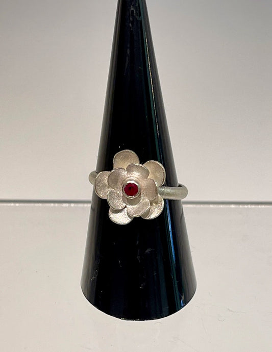 RUBY FLOWER Sterling Silver Ring NM406R