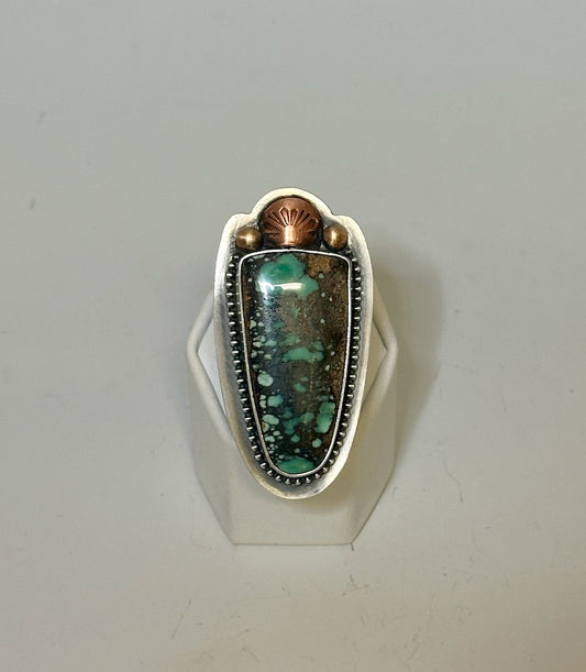 SAGUARO VARISCITE COPPER AND STERLING SILVER RING JK106