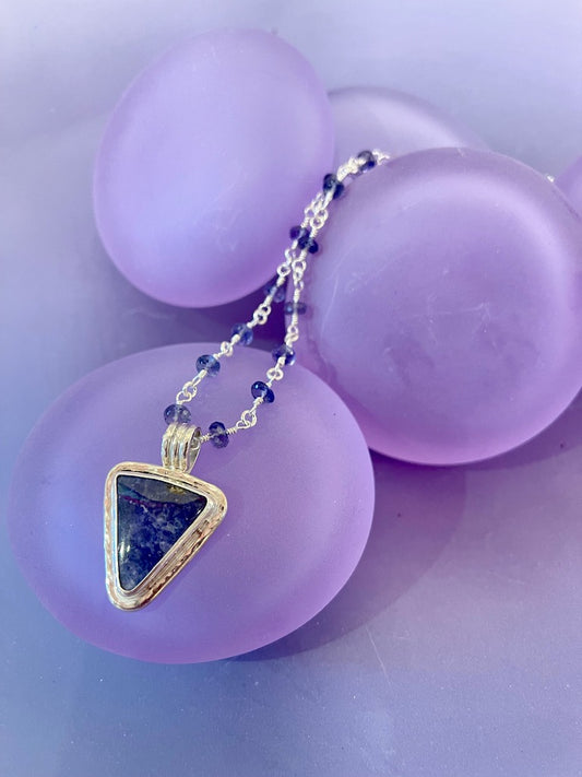 Sodalite and Iolite Necklace with Handmade Sterling Silver Chain NM313N